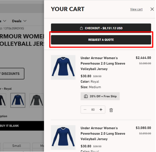 Explore our site, add items to your cart, and request a quote online.